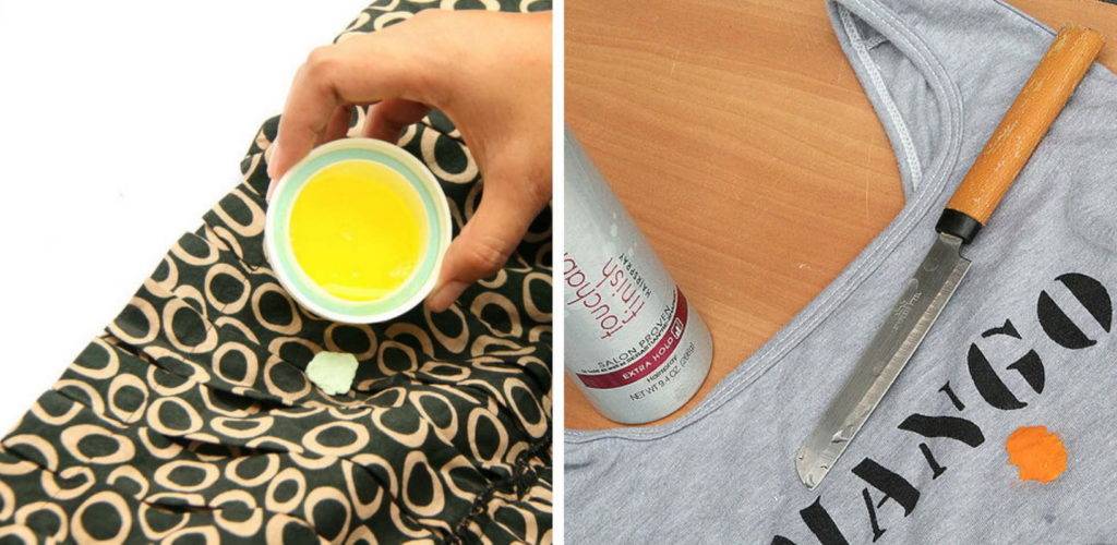 - оставшееся жирное пятно отстирать жидкостью для мытья посуды, пятновыводителем, хозяйственным мылом и прочими методами борьбы с таким типом пятен.