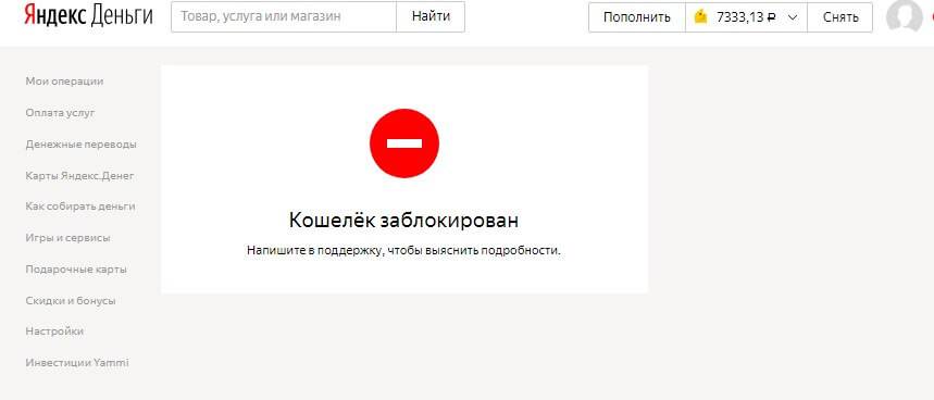 - Если заблокировали яндекс-кошелек из-за проблем с законом, например, долги за кредит, решить вопрос через администрацию ресурса не получится. Придется закрыть долг, потом требовать доступ к балансу. Инициаторы заморозки — представители власти, которые могут настоять на преждевременном возвращении доступа к счету.