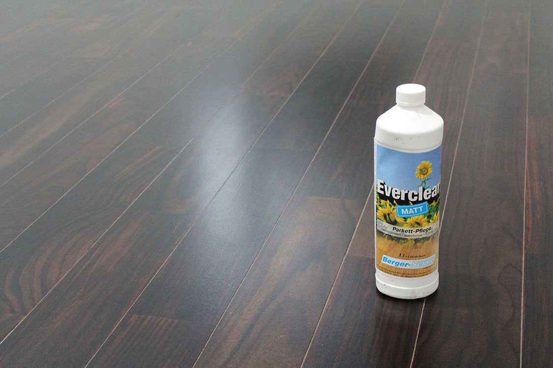 Как практически любое напольное покрытие, паркет нуждается во влажной уборке, но мыть его обычной водой не рекомендуется, даже если тщательно отжать тряпку или насадку швабры. Для уборки паркета разработаны специальные химически нейтральные очистители на водной основе – клинеры. Они мягко удаляют загрязнения и не оставляют разводов. Лучший выбор — клинер того же бренда, что паркет, или рекомендованный производителем.