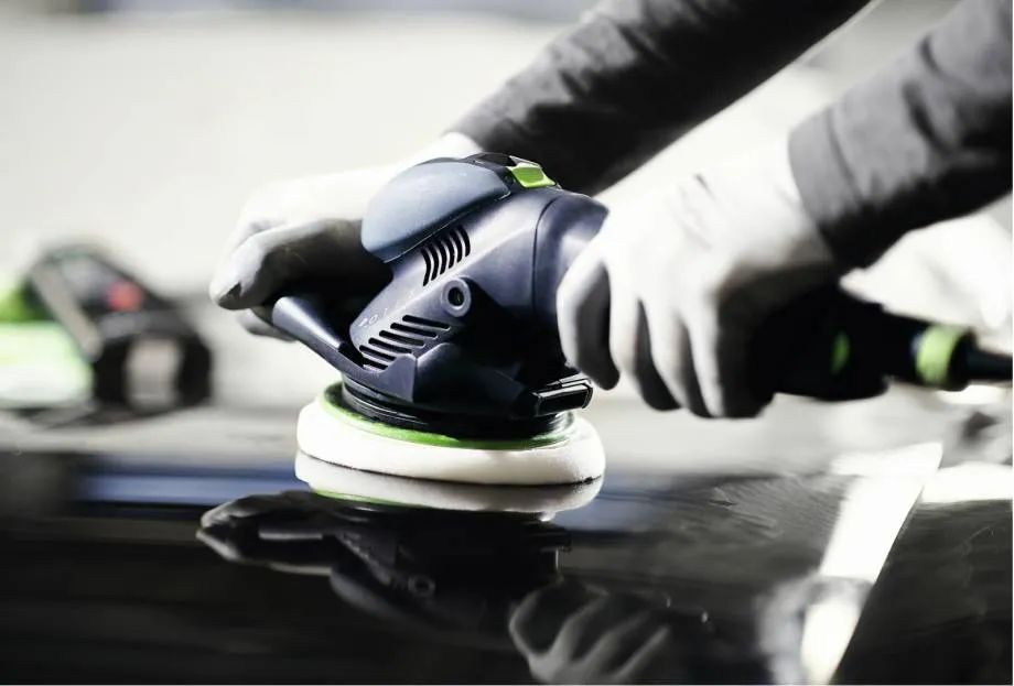 Полировальную машину прикладываем к поверхности и немного прижимаем, затем возвратно-поступательными движениями, распределяем пасту ровным слоем по акрилу