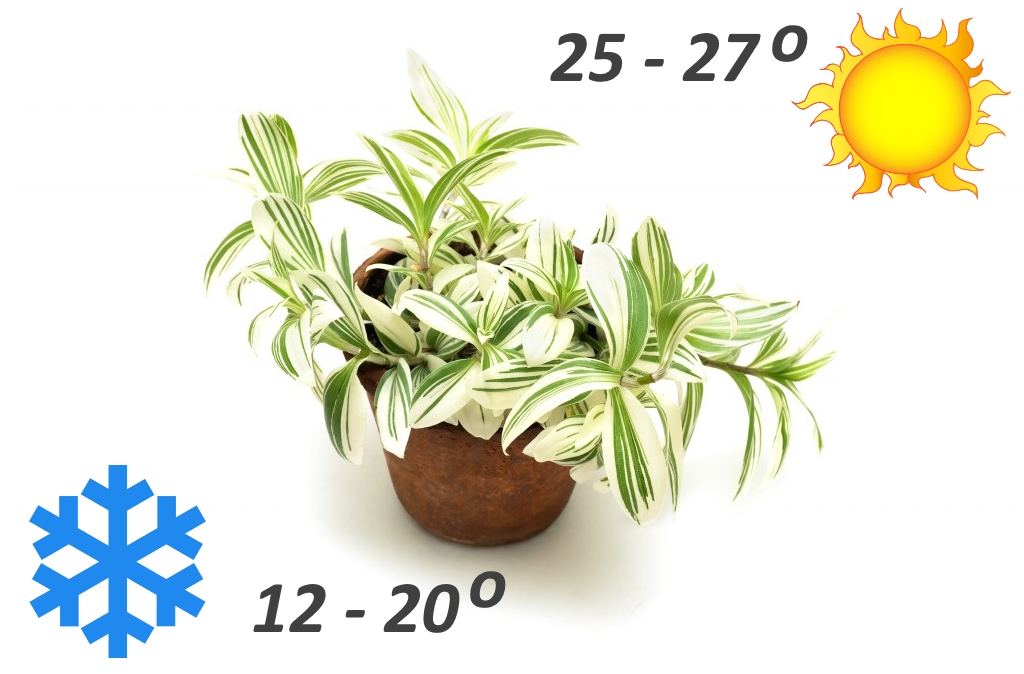 Почти все виды традесканции являются теплолюбивыми и требуют поддержания температуры в помещении на уровне +20 – +24 °С в течение всего года. Растение не терпит понижения этого показателя менее +10 °С.