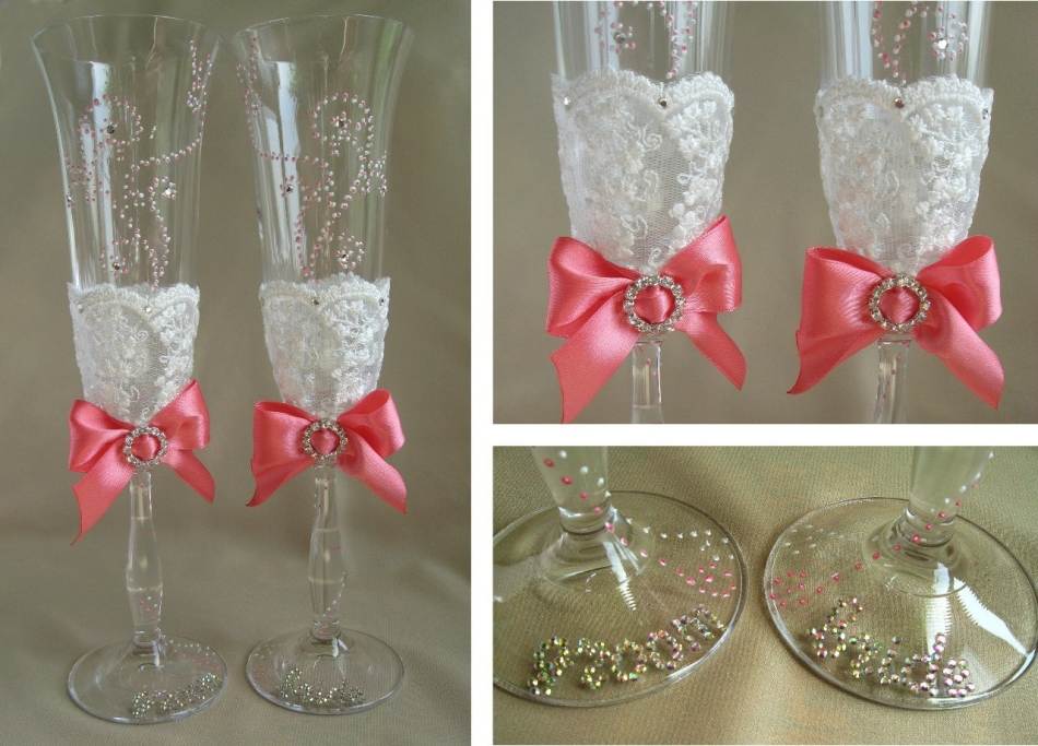 Как украсить свадебные бокалы и фужеры своими руками самостоятельно лентами?