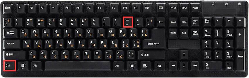 Уменьшить масштаб страниц в интернете можно при помощи клавиш на клавиатуре. Для этого достаточно нажать на Ctrl и, не отпуская ее, кнопку со знаком – (минус). Обычно она находится вверху, рядом с цифрой 0.