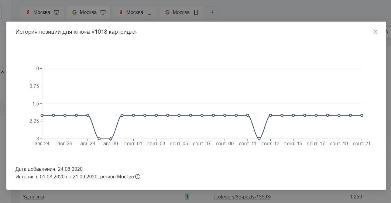 По клику на запрос откроется график с историей позиций по конкретному ключу.