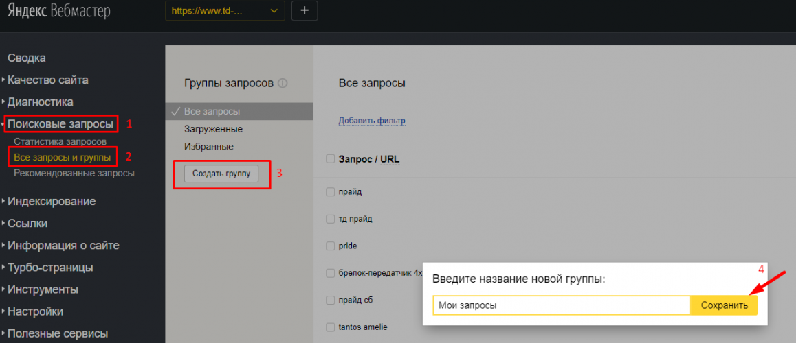 - Нет возможности добавить группу своих запросов и отслеживать ее.