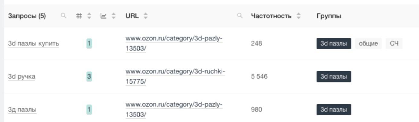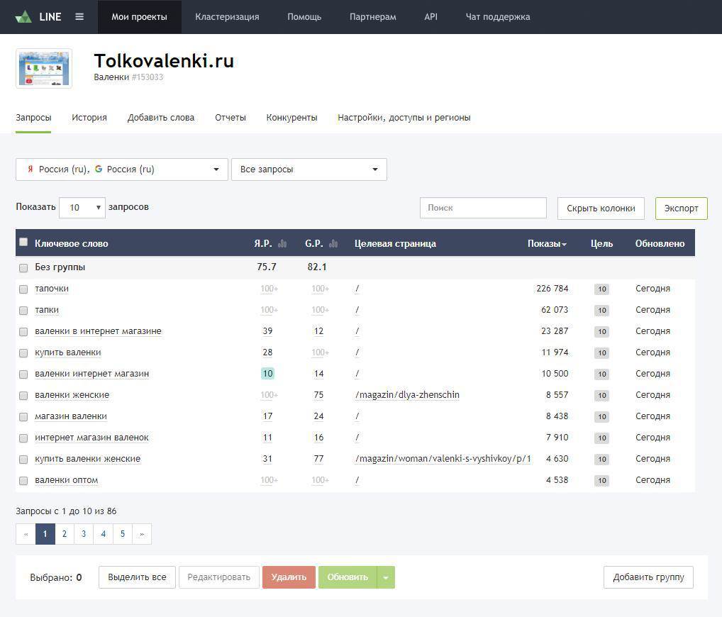 Столбик «Целевая страница» содержит ссылки на определенные сервисом страницы из выдачи по запросам. Их можно указать самостоятельно, если вы хотите наблюдать за изменением позиций конкретной страницы.
