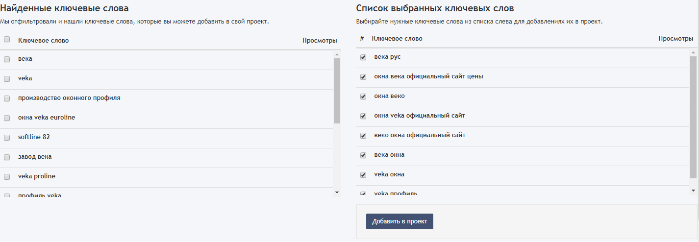 - возможность регистрации личного кабинета для сохранения проектов и позиций ключевых слов по ним;