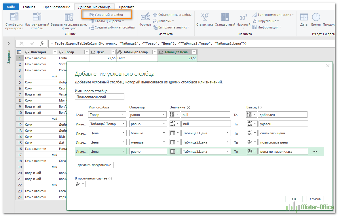 4. Задаем условие в поле «Лог-выражение». На скрине-примере условие следующее: если значение ячейки по колонке «Конечный остаток» левой таблицы равен значению ячейки по колонке «Конечный остаток» справа.