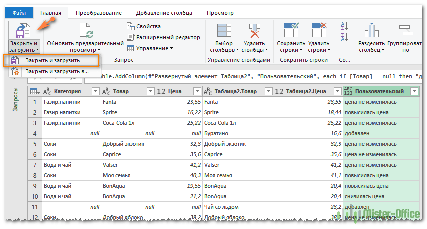 В результате получим список уникальных (неповторяющихся) значений из всех имеющихся у нас наименований товаров.