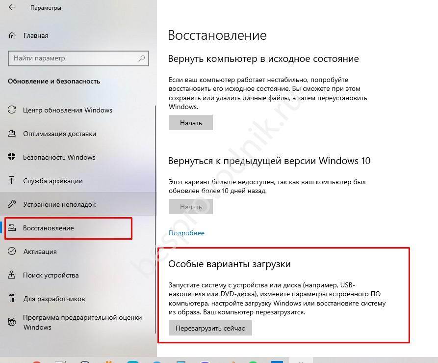 - Перейдите в категорию «Восстановление».