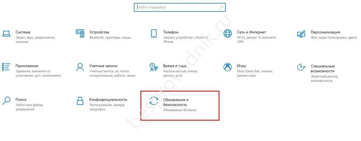 - Зайдите в пункт «Обновление и безопасность».