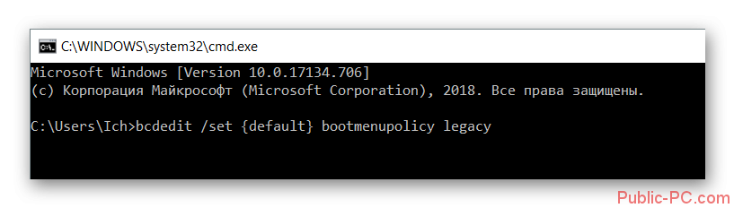 Если вдруг потребуется осуществить откат изменений, используйте команду «bcdedit /set default bootmenupolicy».