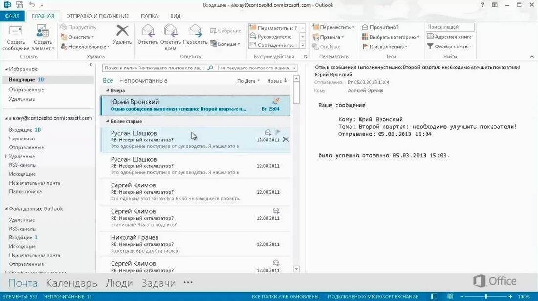 Возврат и редактирование сообщения в Microsoft Outlook 2016, который мало чем отличается от процесса в старых версиях клиента. Все осталось неизменным, в плане расположения и функционала.