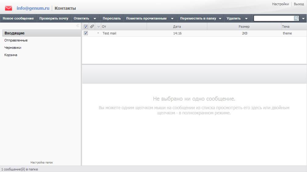 Для начала нужно зайти на сайт http://mail.genum.ru под логином и паролем почтового ящика.