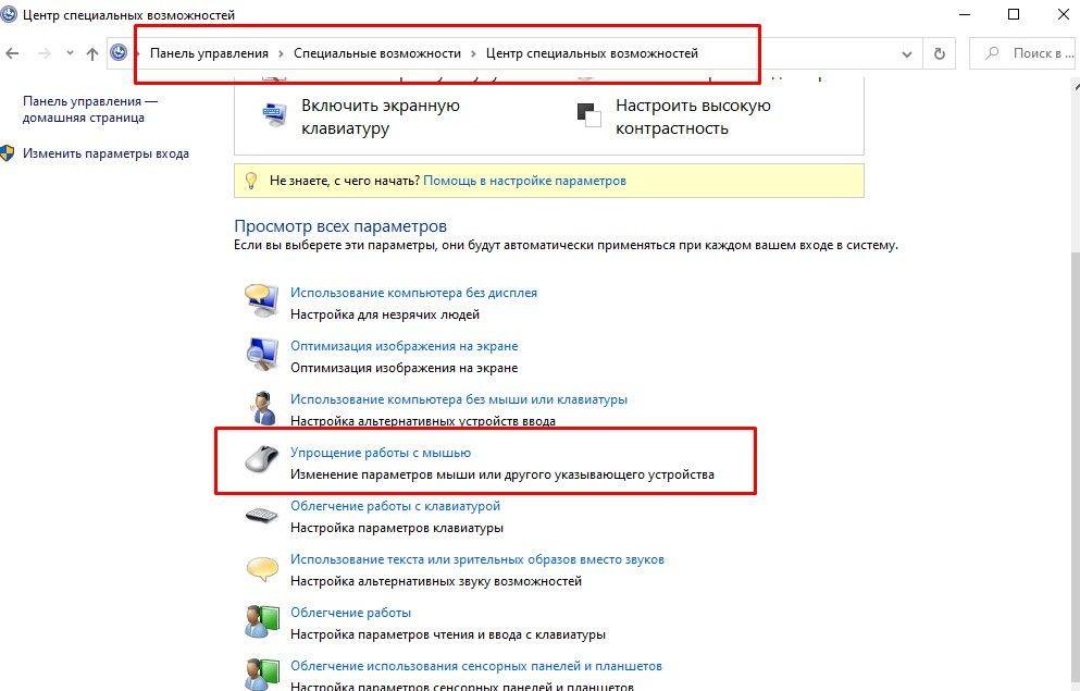 Пройдите по пути: Панель управления — Специальные возможности — Центр специальных возможностей — Упрощение работы с мышью. (На Виндовс 10).