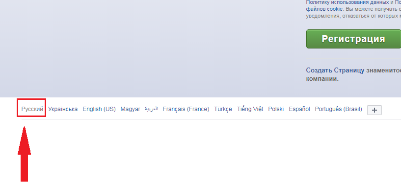 - Язык. Определить, на каком языке будет отображаться Ваша страница на Facebook.