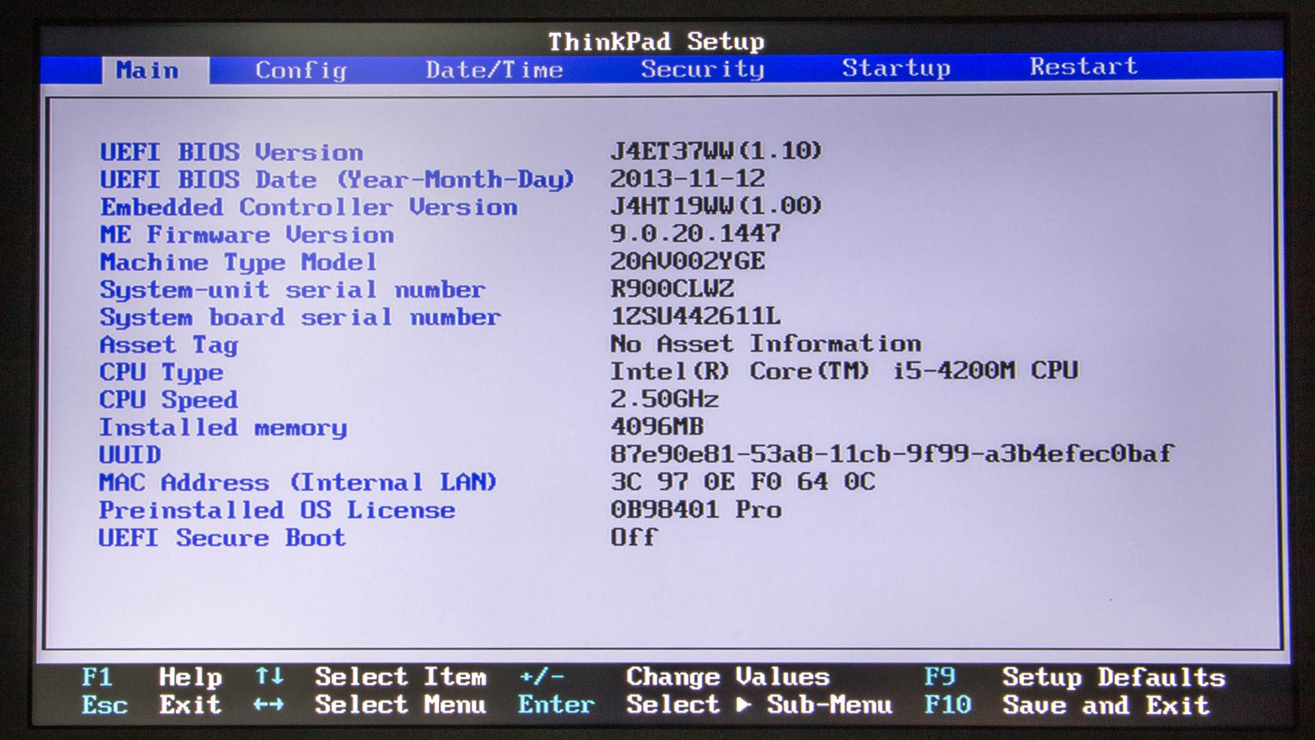 Войдя в БИОС ноутбука мы оказываемся на странице с общей информацией о системе.