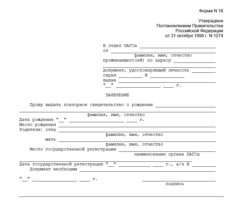 Следует отметить, что очень важным пунктом считается правильность заполнения заявления о вторичной выдаче документа о рождении, то есть формы №18. Так, при случае заполнения заявления вне отделения ЗАГСа, например, дома, можно нарушить правильную последовательность заполнения. Это может привести к тому, что обращение не будет рассмотрено или вообще отклонено.