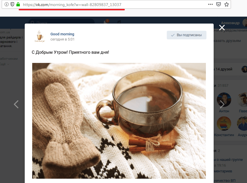 - Щелкните по адресной строке браузера, чтобы посмотреть полный адрес поста.