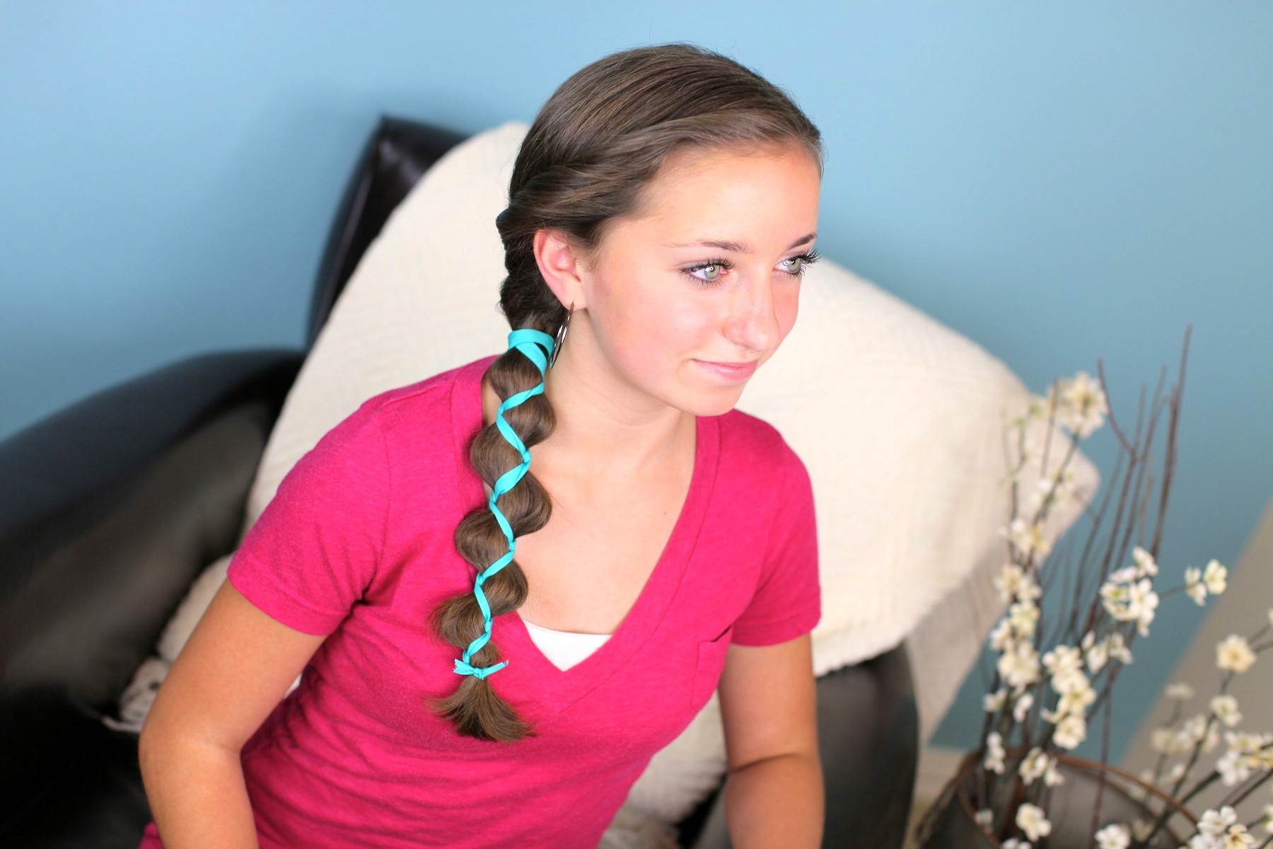 Способ 1. Пожалуй, самым простим способом, считается вплетения ленты в обычную косу. Заранее подготовьте ленту: если коса будет повязана бантом из ленты, тогда она должна быть намного длиннее, чем сами волосы. В случаи, когда концы ленты будут спрятаны в косе, тогда она лента должна быть вдвое больше длины волос.