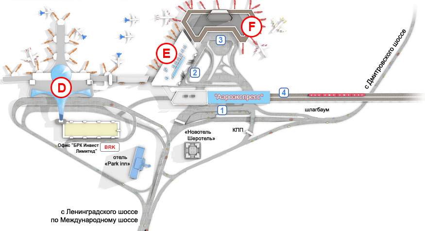 Как проехать к аэропорту Шереметьево схема проезда к терминалам F, D, E, B, C