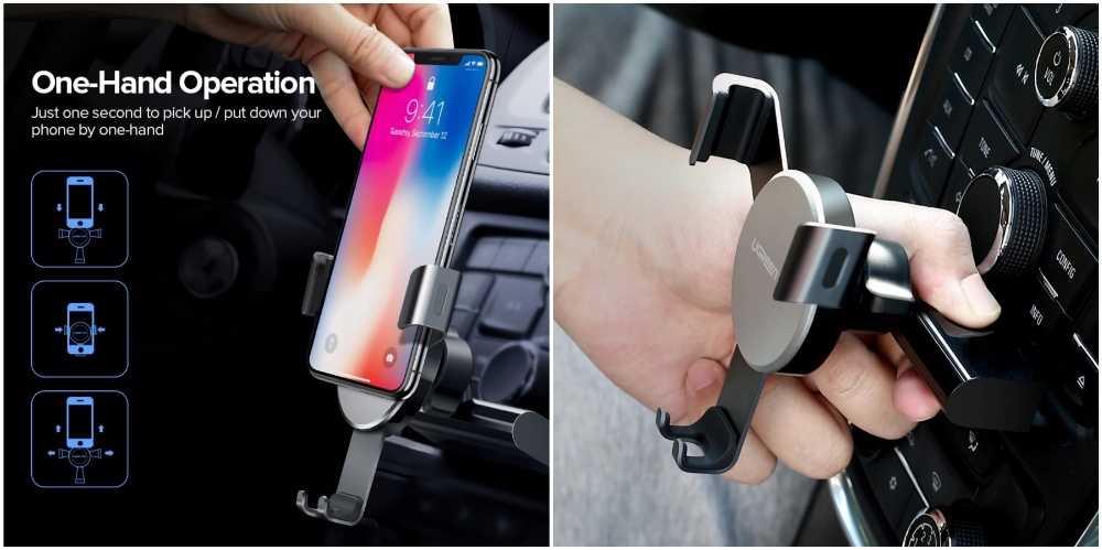- давать возможность управлять телефоном одной рукой, в том числе быстро ставить или снимать его с держателя;
