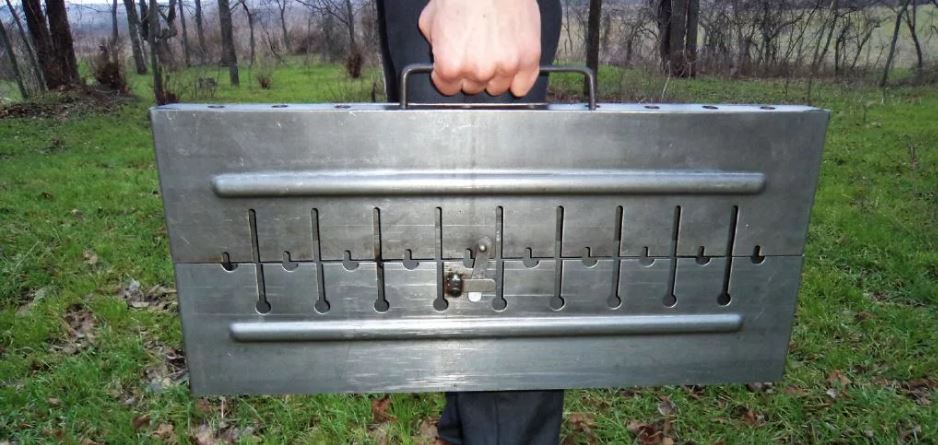 Изготовление своими руками размеры допускает произвольные, в зависимости от количества человек в семье или просто тех, кто будет участвовать в пикниках. В этом случае, соответственно, и длину требуется заложить большую — вплоть до 120 см. В этом случае на углях можно будет одновременно готовить не только шашлыки, но и устанавливать решетку для гриля. Можно также предусмотреть место для казана, длина позволяет.