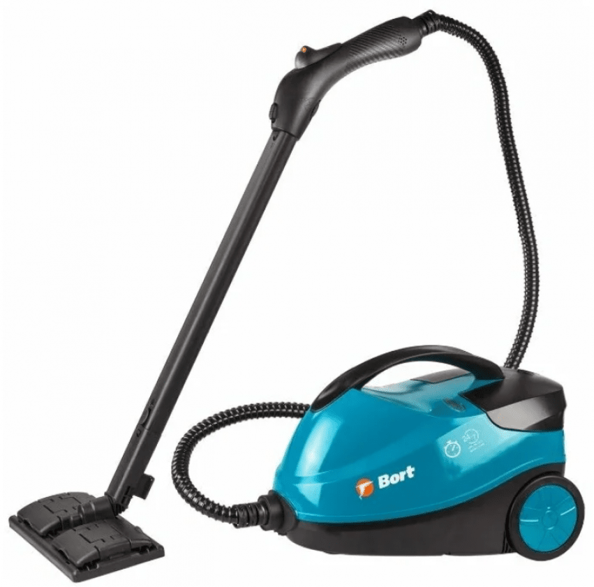 Относительно недорогой пароочиститель – в среднем 5.5 тыс. рублей. Имеет высокую мощность – 2200 Вт, температуру нагрева воды до 143°С. Объем жидкости в баке – 2 л, закипает за 1.5-2 минуты. Кнопки управления расположены на ручке, поэтому режимы удобно переключать во время работы. Bort BDR 2500 RR имеет функцию автоматического отключения, если закончилась вода в резервуаре. Заливать ее можно не отключая его от сети. Главный плюс, который отмечают потребители кроме цены – множество насадок, приспособлений: удлинительные трубки, щетки, скребок, насадка для пола. Также имеется отсек для их хранения Длина шнура – 2 м, вес – 4.7 кг.