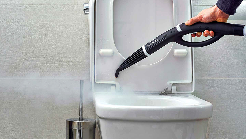 Пароочистители могут уничтожать патогенные бактерии, поэтому при наличии специальной насадки ими можно очищать и дезинфицировать сантехнику, в том числе и ободок унитаза.