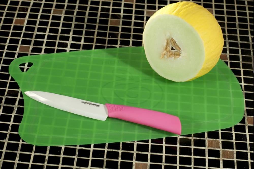 Разделочная доска из пластика хорошего качества подходит для всех видов ножей, включая керамические.