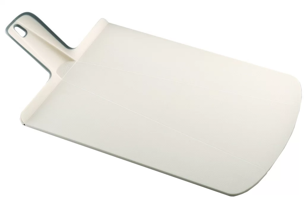 На первом месте в категории оригинальная модель доски. Изготовлена из пищевого пластика, отличающегося высокой прочностью. Поверхность имеет специальное покрытие в виде пупырышков, благодаря которому не тупятся лезвия ножей и не прилипает пища. Особенностью модели являются полосы, по которым доска сгибается, образуя подобие совка, что позволяет удобно пересыпать нарезанные кусочки в посуду для дальнейшего приготовления. Эргономичная ручка оснащена вставками из прорезиненного материала, поэтому даже из влажных рук она не выскользнет. Такие же вставки расположены на обратной стороне, чтобы изделие прочно фиксировалось на столешнице. Размер доски составляет 22 х 28 х 0,5 см.