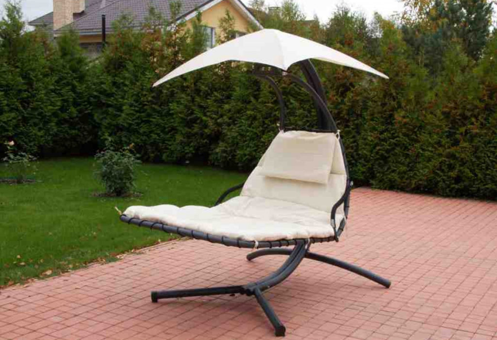 Гамак-качели. Выполнены в виде лежака и рассчитаны в первую очередь на отдых. Как правило, качаться на таких качелях можно влево и вправо, в отличие от традиционных моделей, где качание происходит вперед и назад.