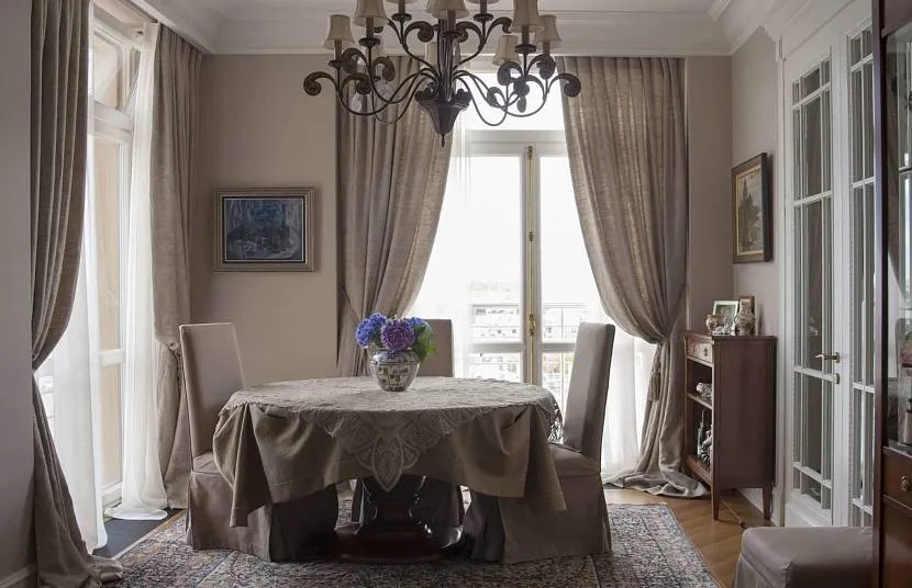 В некоторых стилях интерьера, например арт-деко, принято, чтобы полотна лежали на полу интересными складками. На такую красоту принято добавлять от 20 до 50 см.