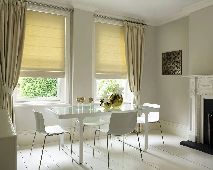 Бежевые шторы двух видовИсточник i.pinimg.com