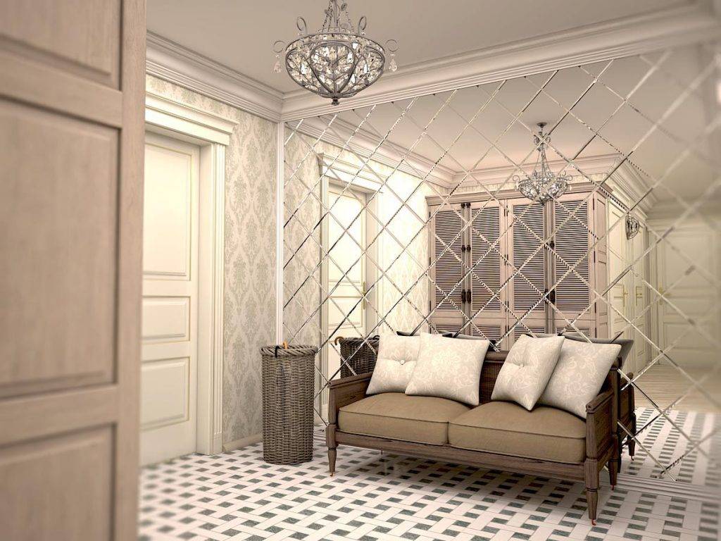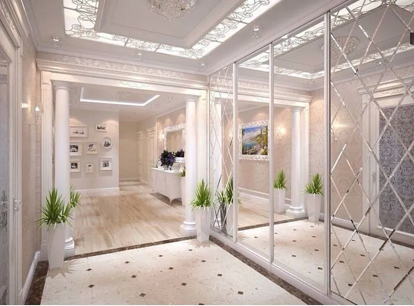 Завораживающий зеркальный слой на стене в прихожей