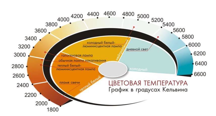 Для подсветки зеркал используют и теплый и холодный свет, каждый из которых имеет свою температуру, которая измеряется в кельвинах и чем выше значение, тем холоднее свет. Только по температуре оценить качество цветопередачи невозможно, многое зависит от конструкции светильников.