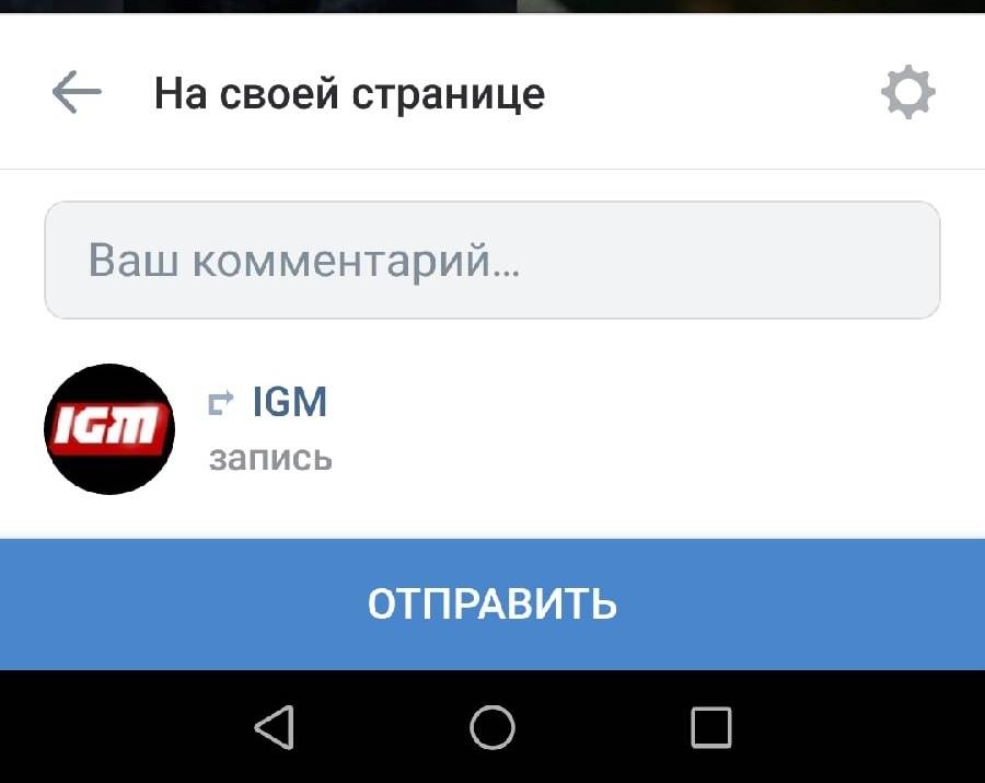 На этом, собственно, все. Как я и говорил, ничего нового тут не предусмотрено. Разве что при отправке на свою страницу можно щелкнуть по шестеренке справа сверху: