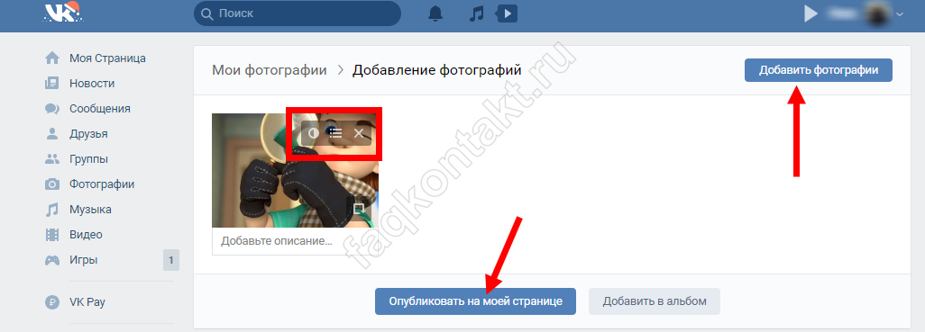 Итак, вот как можно в ВК добавить фото с компьютера на свою страницу: