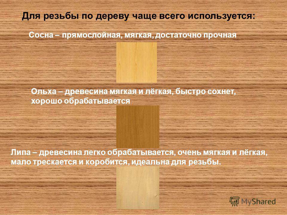 У каждого вида древесины для резьбы есть свои плюсы и минусы. С мягкой древесиной работать легко, но и брака может быть тоже немало. Это осина, липа, береза. Для начинающих эта древесина подойдет лучше всего.