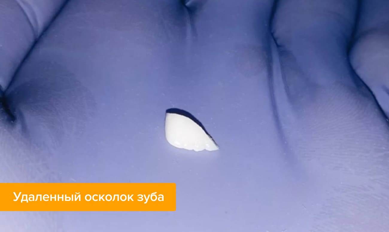 - Опухание и воспалительный процесс. Осколок зуба травмирует мягкие ткани, из-за чего возникают отечность и воспаление. Чем дольше откладывать лечение — тем сильнее очаг воспаления.