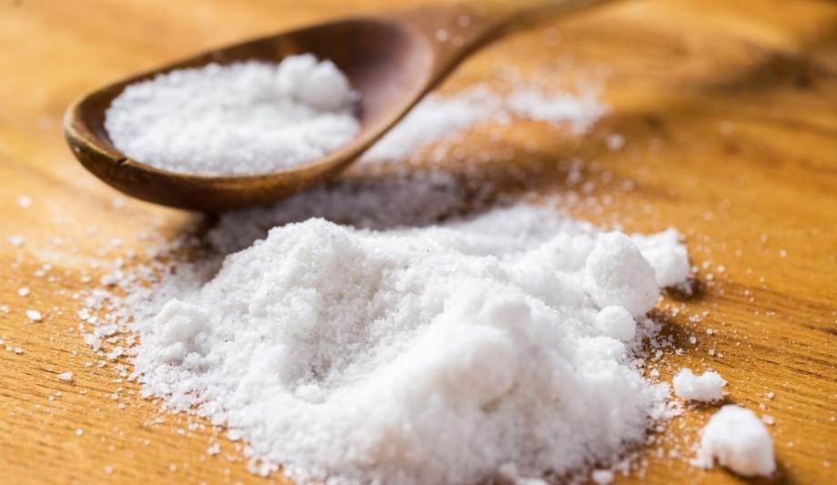 Поваренную соль можно использовать в комбинации с лимонным соком. Смешивайте в равных пропорциях, если сока нет, можете заменить его, на лимонную кислоту. По одной чайной ложки нанесите на загрязнение. Время ожидания: 20 минут.