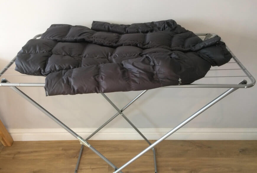 Сушите пуховик в хорошо проветриваемом помещении с невысоким уровнем влажности.