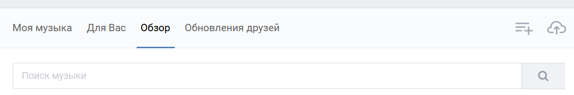 Не возникает и проблем с добавлением нового медиаконтента – достаточно перейти на вкладку «Музыка» и найти подходящую кнопку в интерфейсе, расположенную на панели быстрого доступа с доступными медиатеками (рекомендации, личные треки, обзор, обновления у друзей).
