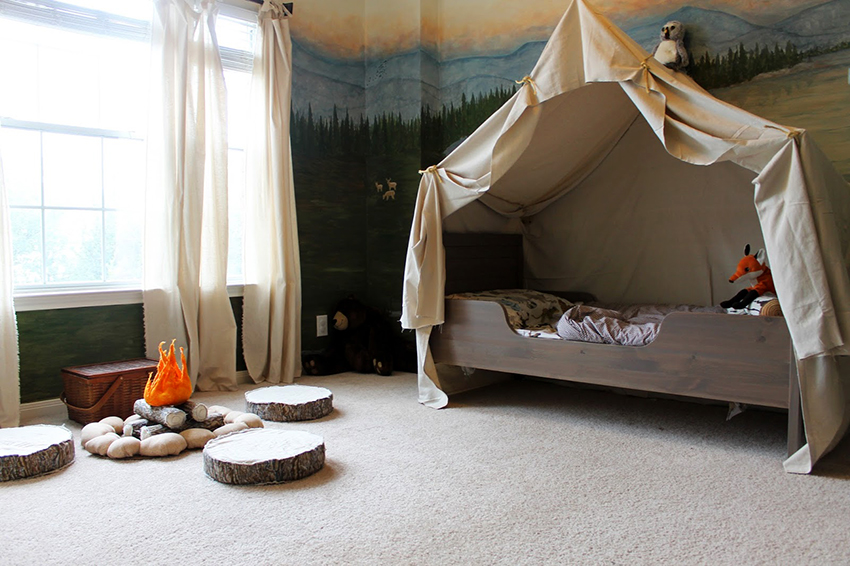 При обустройстве детской комнаты необходимо принять решение о способе крепления навеса.