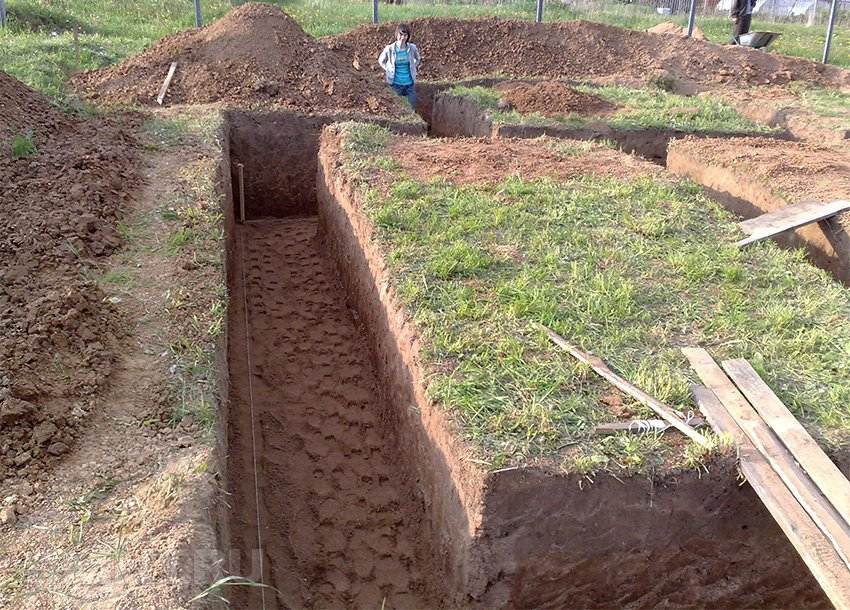После этапа разметки начинается рытье траншеи. Расчет глубины заложения фундамента должен быть отображен в проекте