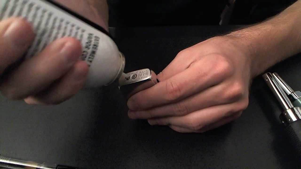 Для заправки можно применять специальный бензин. Автомобильный бензин не рекомендуется к использованию, поскольку температура его горения слишком высокая, а значит, вам будет нужно часто осуществлять замену фильтра.Заправка зажигалок zippo имеет одну хитрость. Баллон с газом можно использовать несколько раз, однако после каждой заправки давление внутри него будет все меньше. Поэтому, прежде чем непосредственно перейти к этому процессу, зажигалку нужно некоторое время подержать в морозильной камере, что даст возможность заполнить ее в большем объеме.