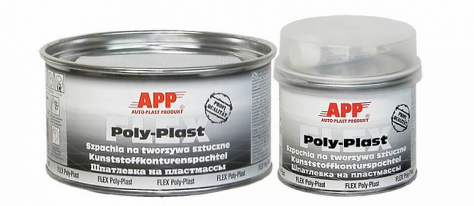 АРР Flex Poly-Plast. В этой двухкомпонентной смеси содержится полиэстер, благодаря которому она отличается высокой эластичностью и механической прочностью. Хорошо соединяется с поверхностью стандартных пластмасс, используемых в конструировании авто. Предохраняет кузов от воздействий растворителей, кислот или щелочных растворов.