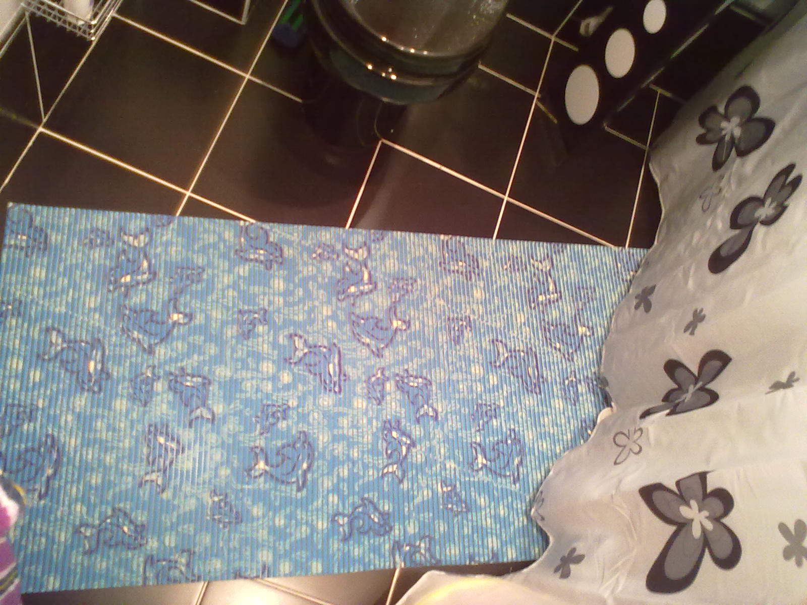 - Самый простой вариант – вырезать из плотного полового покрытия небольшой половичок нужной формы и оверлочить или проклеить его края.