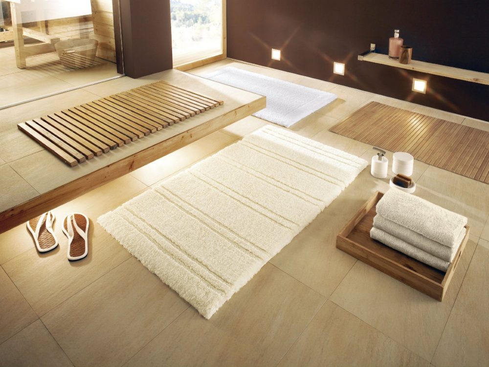 Такие модели нужны затем, чтобы комфортно было выходить из душа, завершив банные процедуры. Уложив коврики на пол, можно защититься от холода и риска поскользнуться. Этот аксессуар уместен не только в зоне рядом с ванной. Если в семье принято ходить босиком, можно выбрать 2-3 изделия и постелить их у раковины и унитаза.