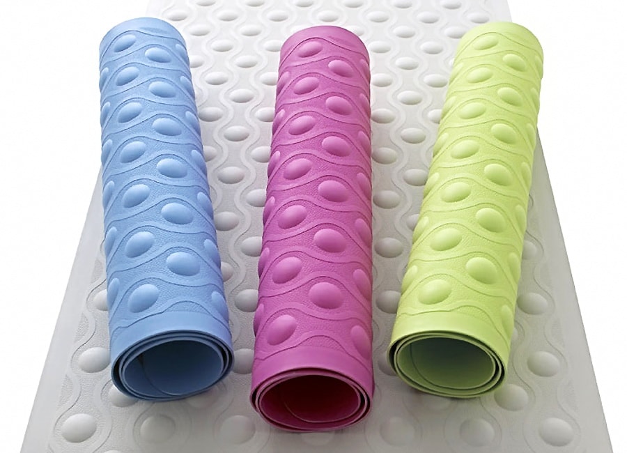 Для ванных и душевых кабин используются коврики, имеющие на внутренней стороне присоски. Они обеспечивают надежное сцепление с любым видом поверхности. С их помощью коврик крепится на дно ванны и препятствует скольжению.
